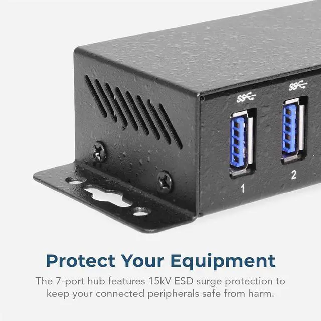 Gbps Protect Your Equipment: The 7-port hub features 15kV ESD surge protection to keep your connected peripherals safe from harm.