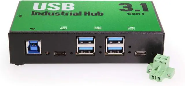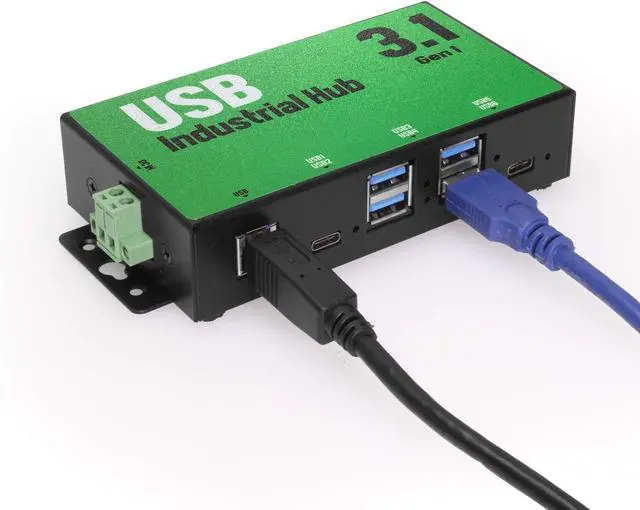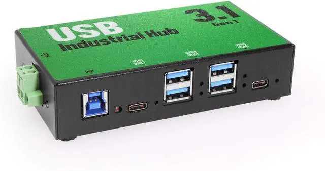 Industrial-grade USB3.0 hub with metal case suitable for DIN rail mounting