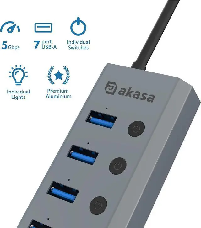 [Versatile Utility] - Simultaneously connect seven devices and optimize your desktop space using USB-A ports.