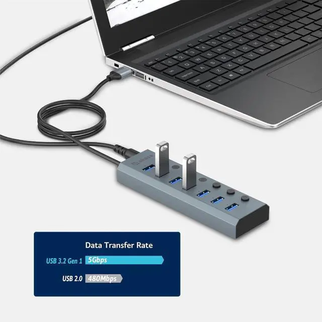 [High-Speed USB Data Transmission] - Get 5Gbps superspeed data transfer using USB 3.2 Gen 1 from our 7-in-1 USB Type-A hub.