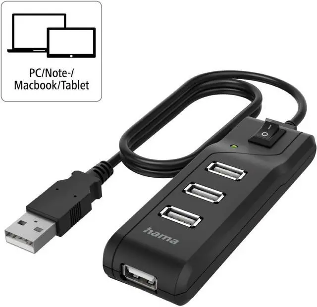 High-speed USB hub: USB 2.0, data transfer at up to 480 Mbit/s, 1.8 m long cable made of flexible materials with kink protection against cable breakage