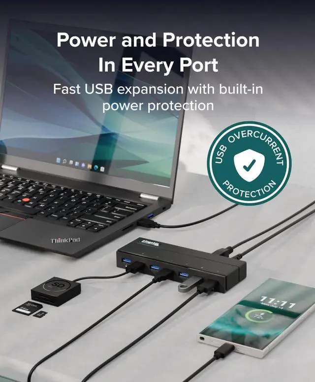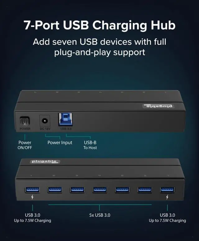 Expanded Connectivity: Add up to seven USB 3.0, 2.0, or 1.1 devices to any USB 2.0 or 3.0 capable computer; fully plug and play, devices can be hot-swapped, supports USB over-current protection; includes 36W UL listed US AC wall plug, 100-240V 50/60Hz