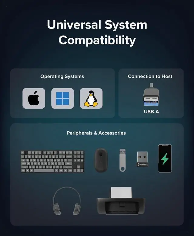 Universal Compatibility: Compatible with most Windows, macOS, and Linux systems; on legacy systems, the latest drivers and updates should be installed to ensure compatibility