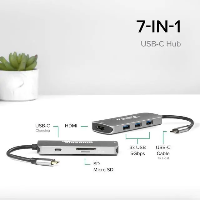 7-in-1 USB C Dock: Expand your connectivity with 3 USB 3.0 ports, 1 4K HDMI display, 1 SD card reader, 1 microSD card slot, and 1 USB-C Power Delivery charging port