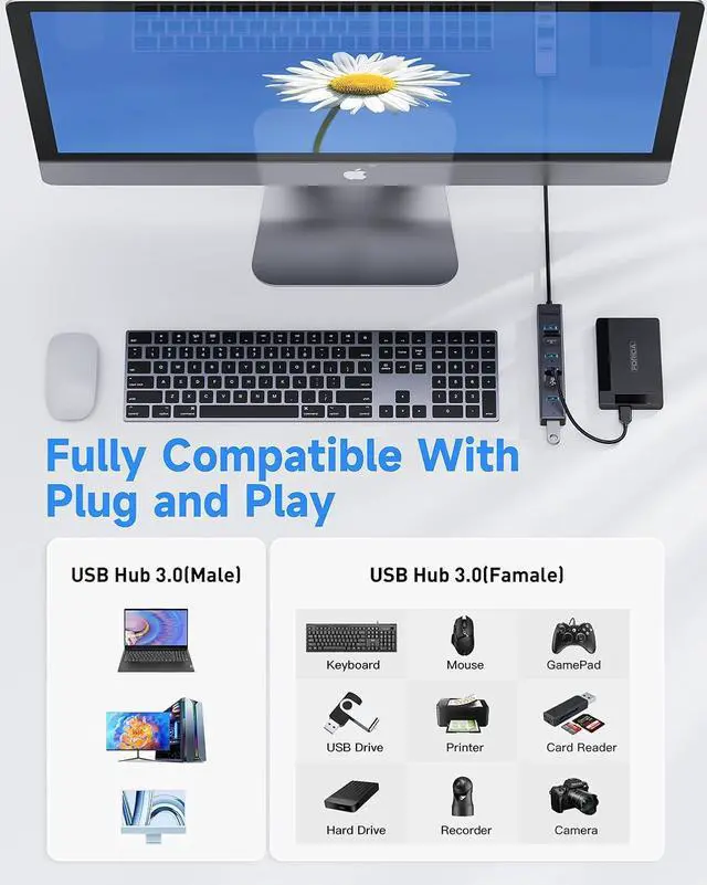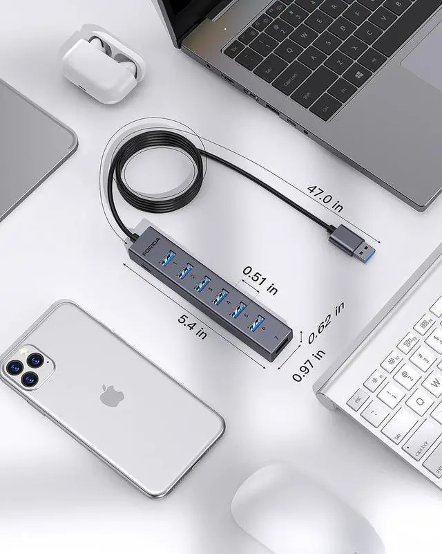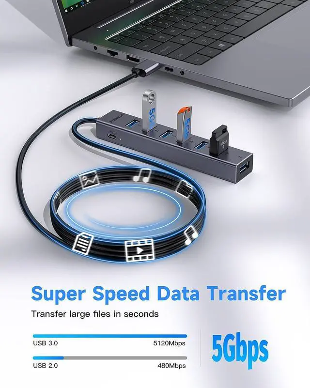 5Gbps Data Transfer Speed : The USB 3.0 Hub extension provides up to 5 Gbps data transfer speed, which is more than 10 times faster than USB 2.0, and it is backwards compatible with USB 2.0/1.0