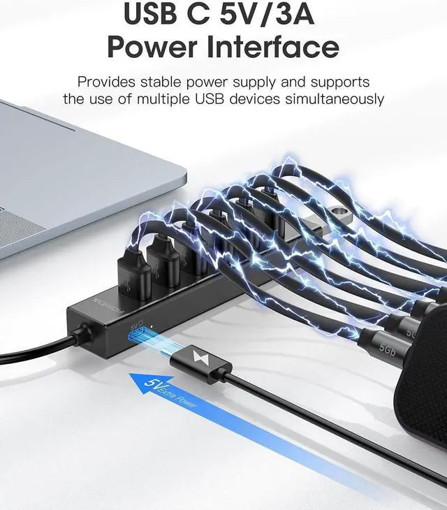 Easy To Use-This USB port hub has a built-in high-performance chip to keep your devices and data safe, and supports hot swapping. No need for installation of any software, drivers, plug and play. Please offer extra power supply via the usb c port of USB adapter when the power-hungry devices are connected.
