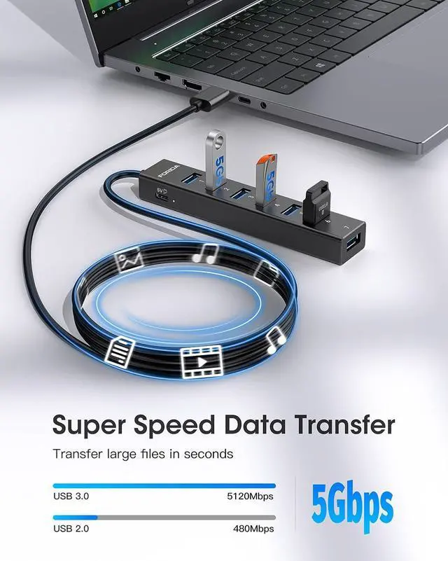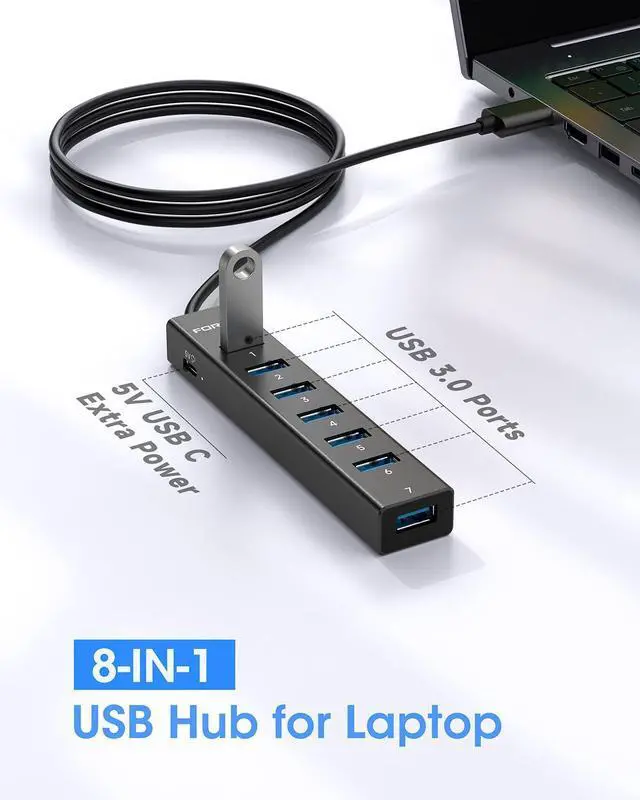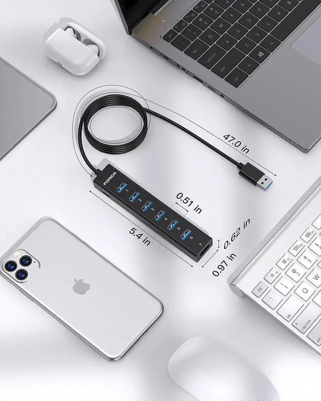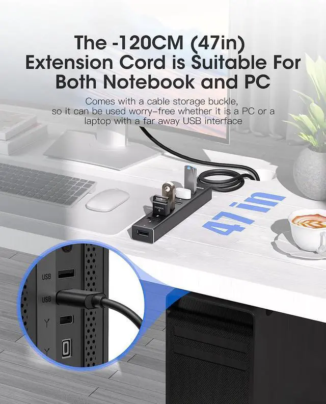 47IN Long Cable USB Hub-With 7 USB 3.0 ports, suitable for both laptops and PCs, you can easily connect multiple USB peripherals, such as flash drives, mice, keyboards, and printers, to your computer.
