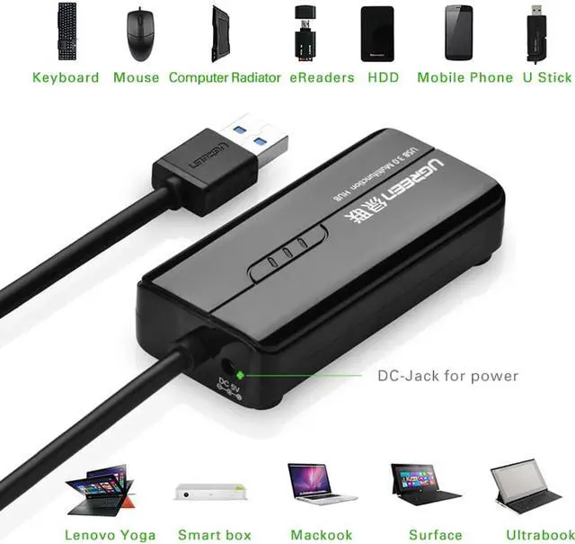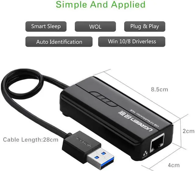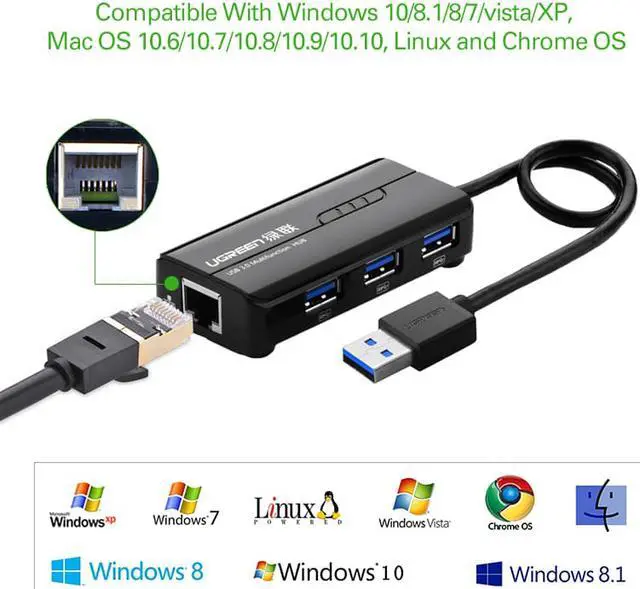 Description Ugreen 20265 USB 3.0 Hub 3 Ports with Gigabit 10/100/1000Mbps Ethernet Network could not only add a network interface to your computer via USB, but also to connect your computer to multiple devices, such as digital cameras, PC fans, flash driver. It is a perfect solution for Windows Surface Pro, MacBook Air, MacBook Retina and more which do not have ethernet interface, or replace a broken ethernet interface on PC.