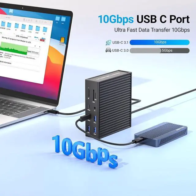 10Gbps USB C 3.1 Fast Data Transfer: The usb c docking station dual hdmi monitor adapter comes with 2*USB 3.1-C transfer your large files in seconds, suitable for video editor, Financial analysts and gamers.