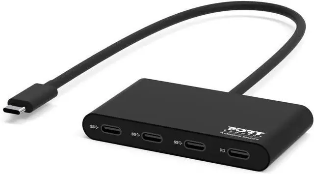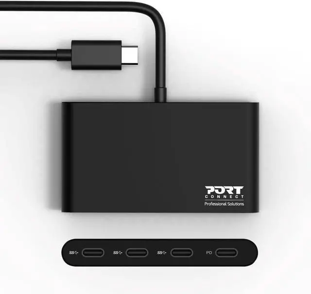 USB-C HUB 3 Ports USB-C & 1 USB-C Power Distribution Converts a USB-C port to 4 USB-C ports. High-speed data transfer (up to 5 Gbps). 1 USB-C port provides up to 100 W Power DeliveryTM Long Cable of 1 4.5 cm Compact and lightweight design for mobile use. Plug and play installation. Self-powered device