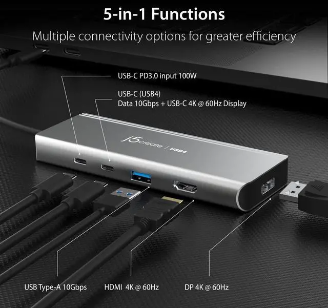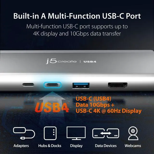 Next-Gen USB4 Technology JCD401 is the first USB-C hub to incorporate the latest USB4 controller from Intel, with up to 4K resolution using DisplayPort, HDMI, or USB-C and access data faster without affecting system performance.