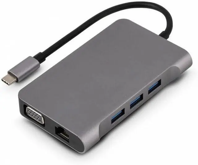 USB C Docking Station 10 IN 1: With this Docking station you can eaily connect multiple devices by extending one USB C port to HDMI 4K, VGA, RJ45, 3x USB 3.0, USB-C, SD/Micro SD and 3.5mm Audio