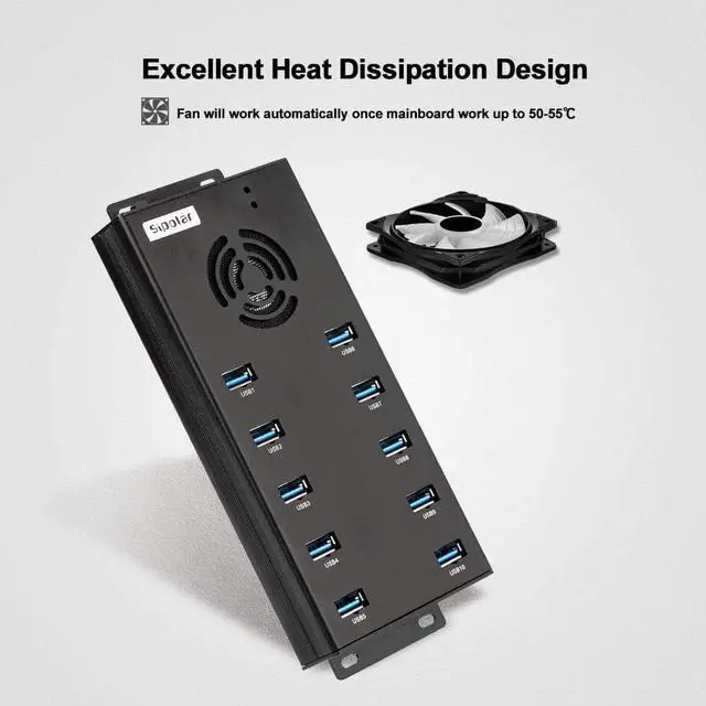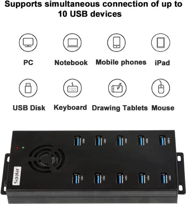 USB Port Expander- Sipolar USB 3.0 Hub designed with 10 USB 3.0 ports extension to your computer, laptop, card reader, webcam, mobile HDD, oculus, printer, and more USB devices
