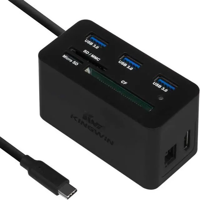 Kingwin USB HUB Adapter w/Memory Card Reader Writer & USB 3.0 HUB - Thunderbolt 3 Supports High Speed SD Micro CF Card ehternet, 4k hdmi, 60W PDReader for MacBook, Laptop, Desktop - (KWCR-801U3-CPD)