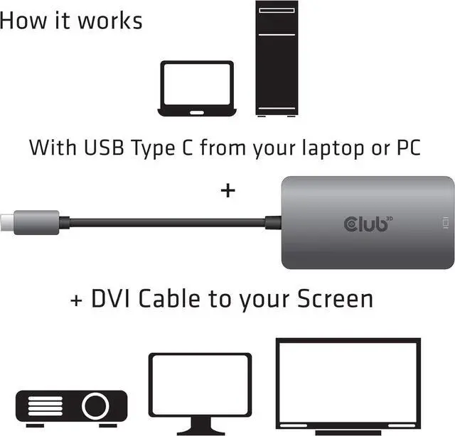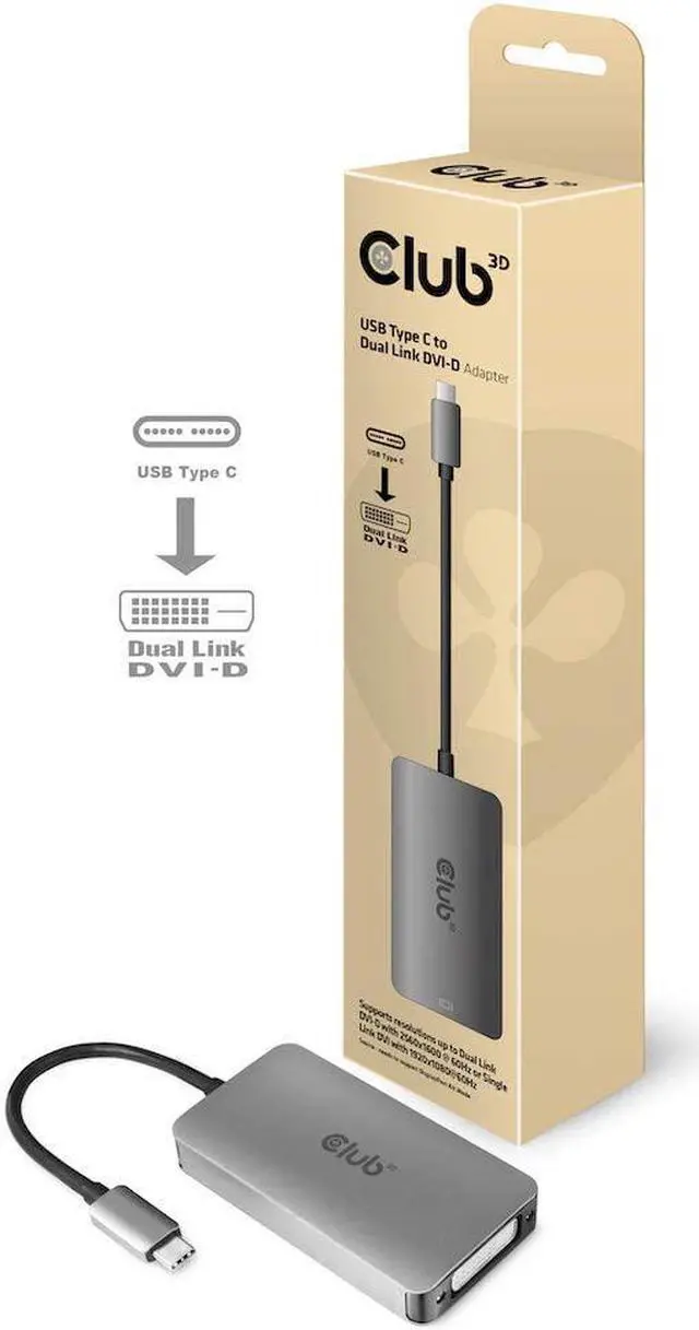 usb c to dvi-d dual link active adapter, 3840 x 2160 @ 30hz, 2560 x 1600p @ 60hz, 268.5mhz clock