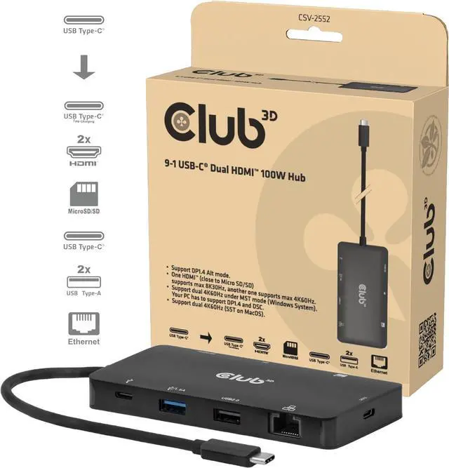 Dual Display Hub with DP1.4 Alt Mode, OUTPUT: 2x HDMI Connect up to 2 displays with a single USB-C input and enjoy resolutions from up to two 4K60Hz displays for an impressive multi-monitor setup.