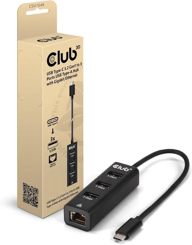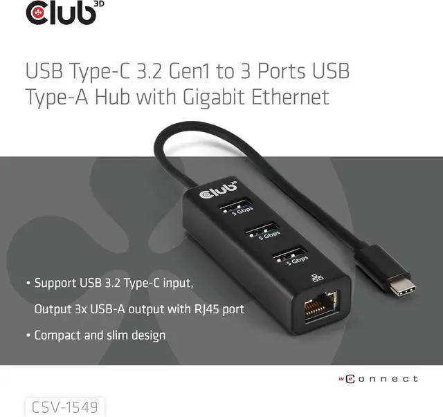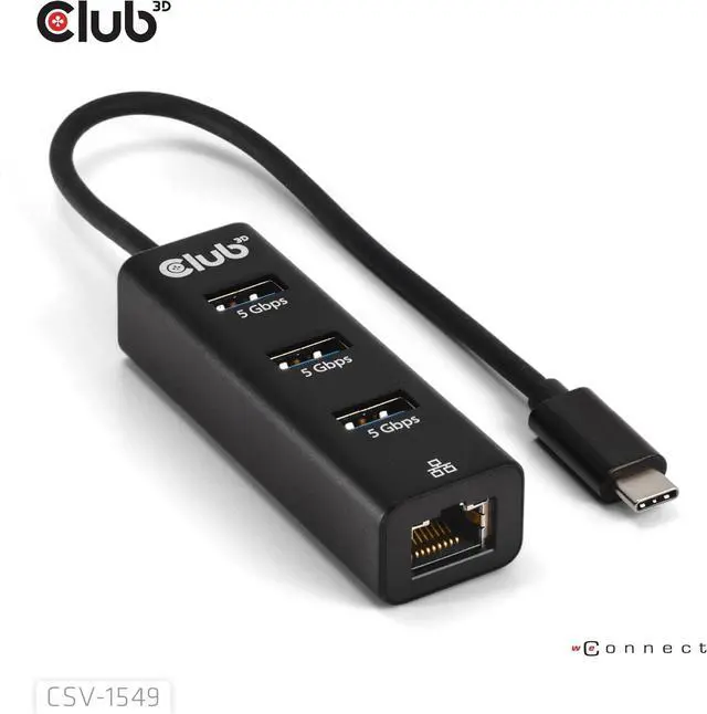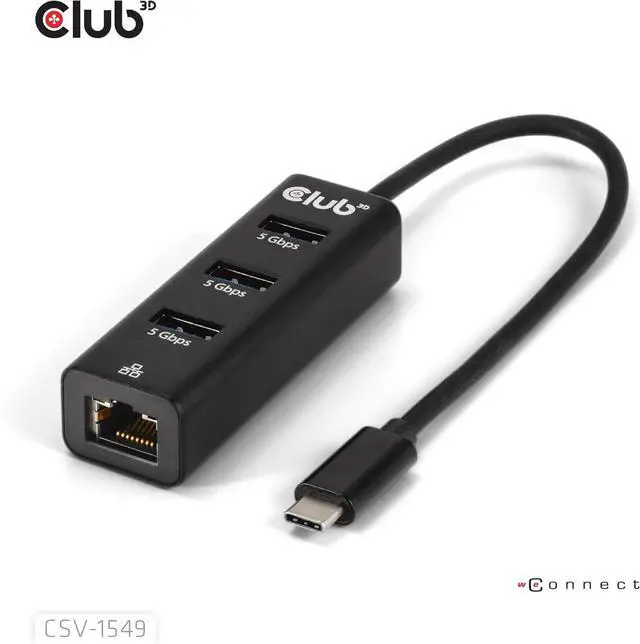 Club3D CSV-1549 USB Type-C 3.2 Gen1 to 3 Port USB Type-A Hub with Gigabit Ethernet