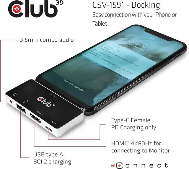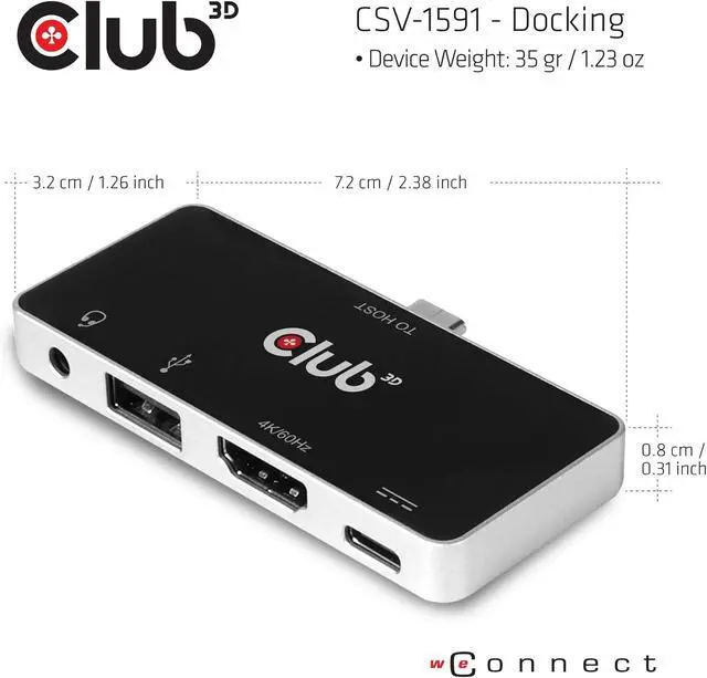 Upstream: 1x USB Type-C connector (connection to the host) Supports DP1.2 Alt Mode, with maximum bandwidth of 5.4Gbps per lane, 4 lanes 21.6Gbps