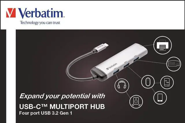 Perfect extension with four USB 3.2 Gen 1 ports, the USB-C multi-adapter from Verbatim is perfect for turning your laptop or notebook into a real workstation.