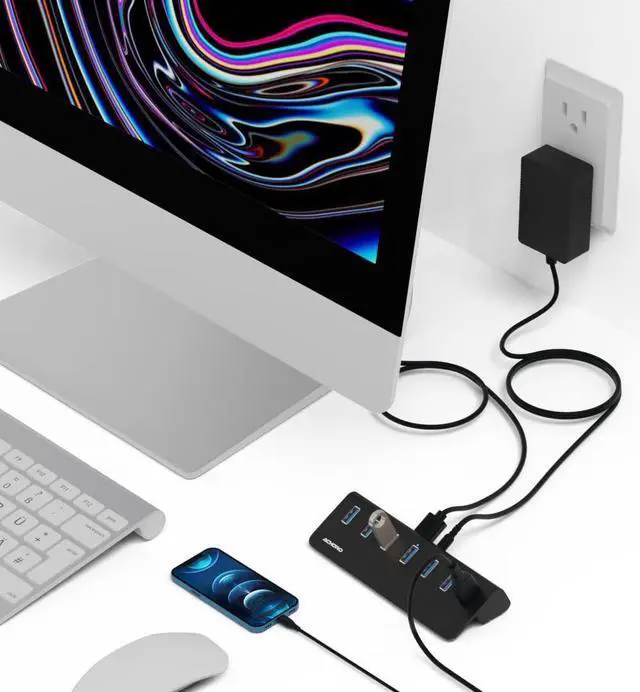 Plug-And-Play USB Powered Hub Built in Hot-Swapping Capability. Compatible with Desktop, Laptop PC, iMac, MacBook, Windows, Linux, Notebook, All in One, and other major computer systems.
