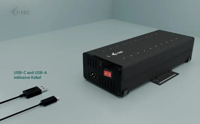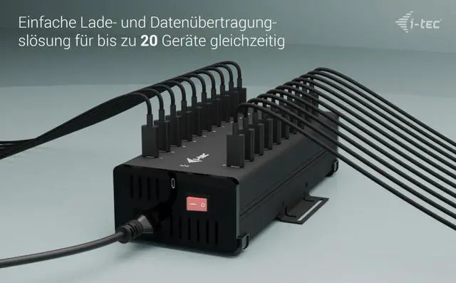 The HUB offers 20x USB-C ports. Each port supports up to 15W charging power and 5Gbps or 480Mbps data transfer
