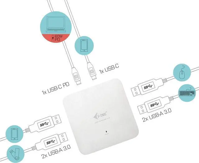 1 x USB-C port - generation 1 + PD (data + power delivery)