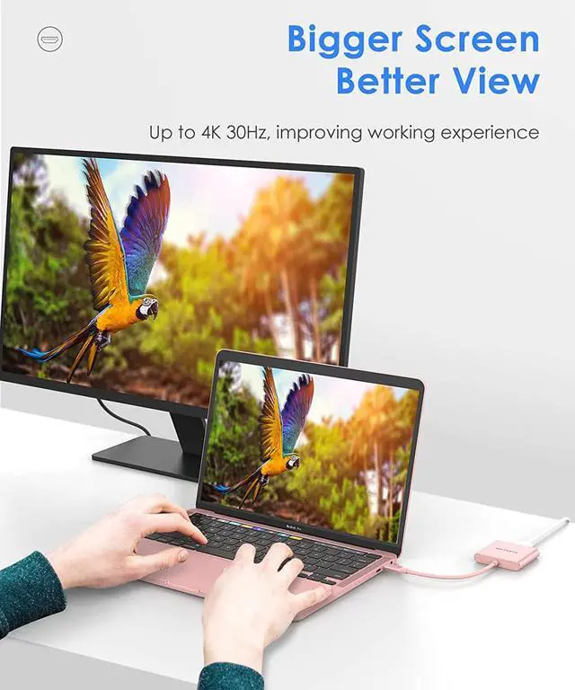 4K HDMI Video output: mirror or extend your screen with USB C to HDMI adapter to HDTV, monitor, or projector. You could enjoy movies with your family on a bigger screen, or making a vivid presentation in a meeting. Support 3840x2160 4K@30Hz, 2560x1600 and lower resolutions at 60Hz.