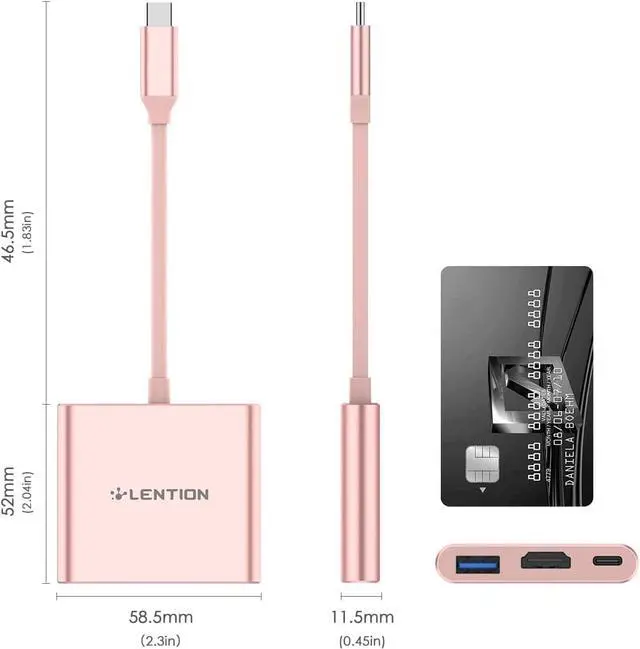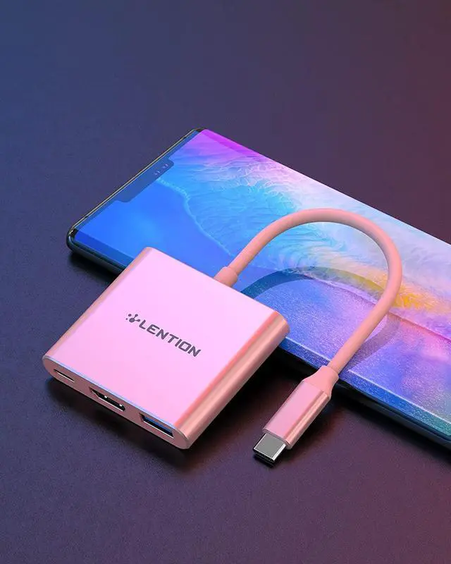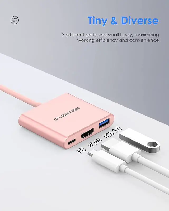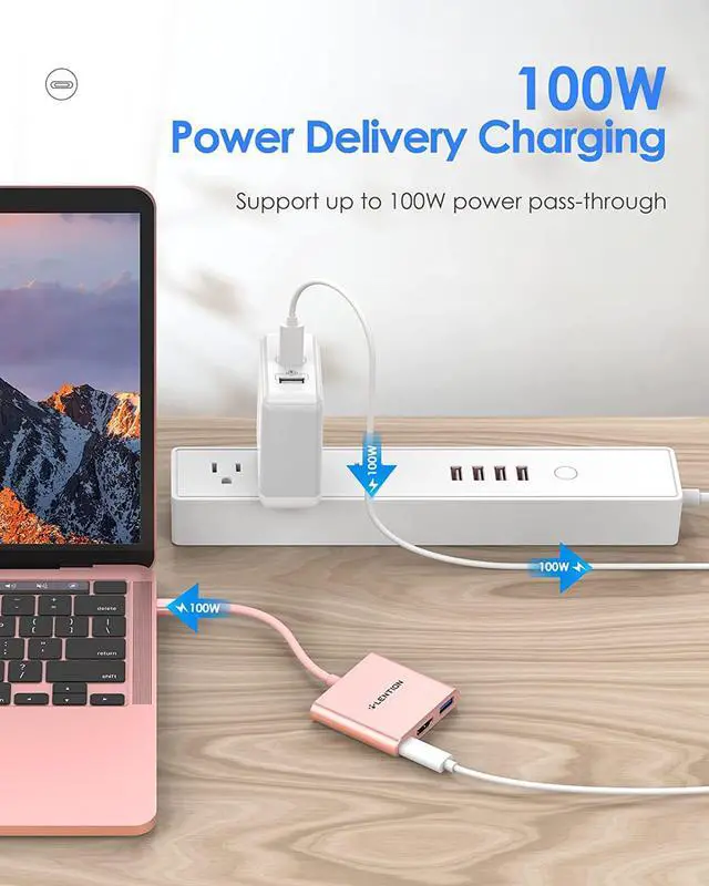 3 in 1 USB-C Hub: with one 100W type C charging port, one 5Gbps USB3.0 data port and one 4K HDMI port. All the ports can work simultaneously. And features an ultra-slim aluminum design.