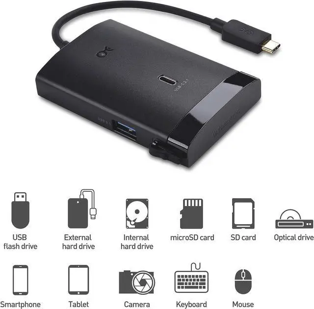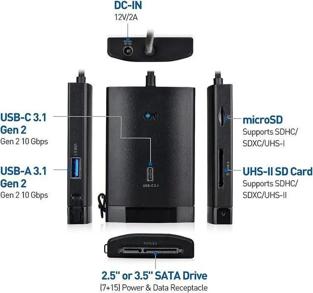 DOUBLE THE SPEED OF USB 3.0, the multiport USB C dock adds a 10Gbps USB-A and USB-C, microSD and UHS II SD card reader, and a SATA 3.0 connection over a single USB-C port; Connect to a computer with a USB Type-C or Thunderbolt 3 port with this USBC hub