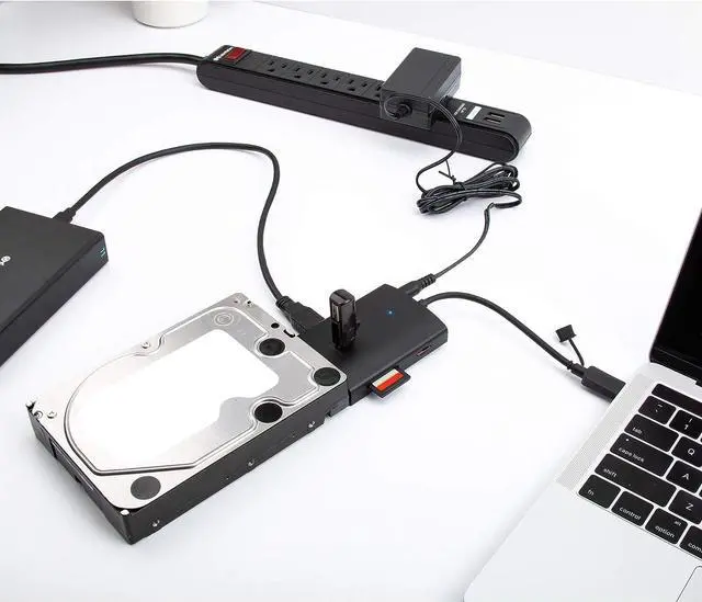 OPTIONAL AC POWER ADAPTER come with the USB-C hub boosts the power from your USB-C or Thunderbolt 3 port; Ensure stable drive performance when transferring files from an 2.5" SSD or 3.5" HDD using the USB Type C hub; Portable USB C dongle travels easily in your laptop sleeve