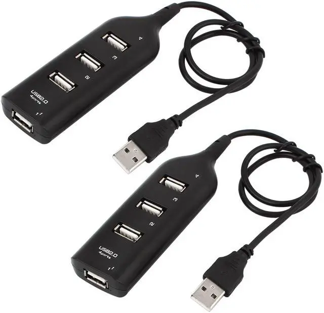 2 PCS Hi-Speed 4 Ports USB 2.0 Hub Expander Adapter Black