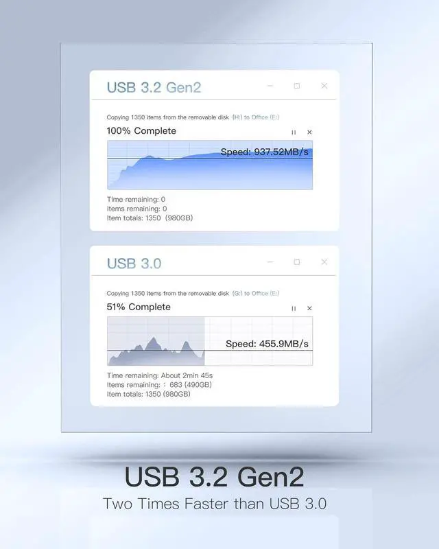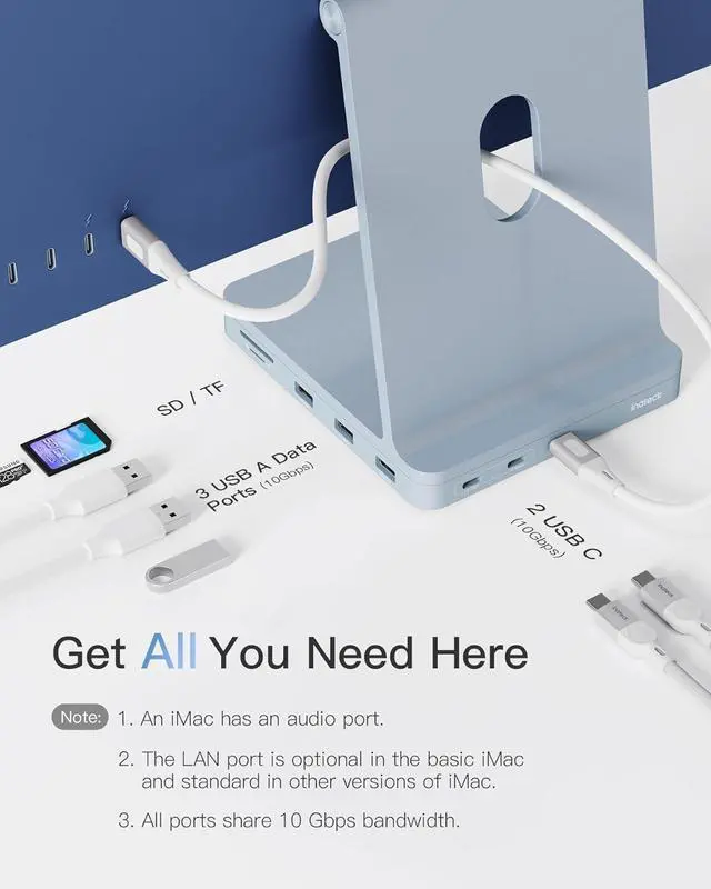 This imac dock supports USB 3.2 Gen 2 standard so the theoretical transfer speed is 2 times as fast as that of USB 3.0 standard.