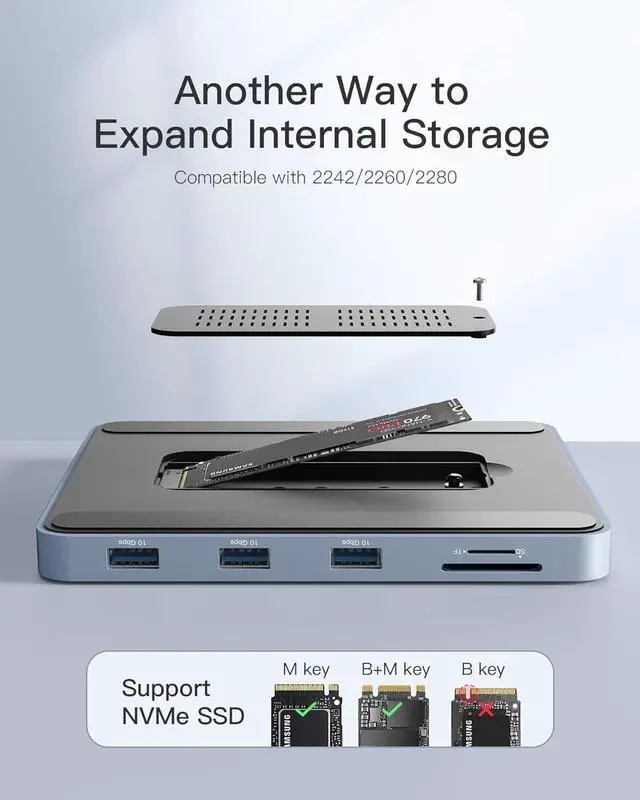 The NVMe SSD enclosure at the bottom of the dock is ideal for capacity expansion and data backup.