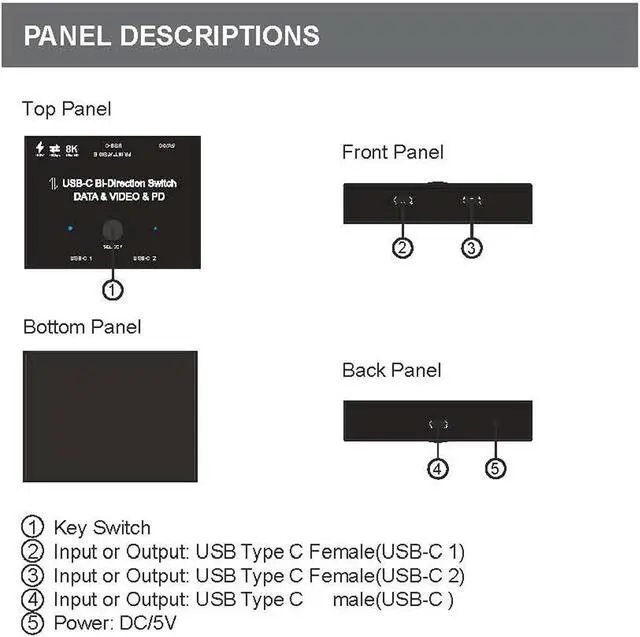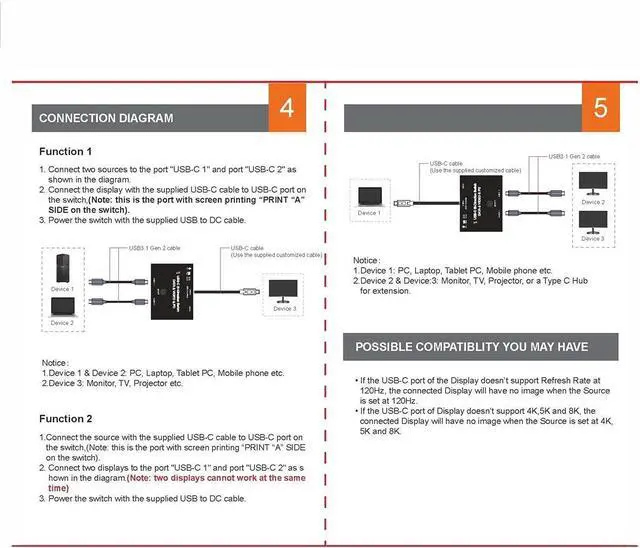 Compliant to link with all USB-C input and output,Complies with USB3.1USB PD 3.0 and DisplayPort 1.4 specification.