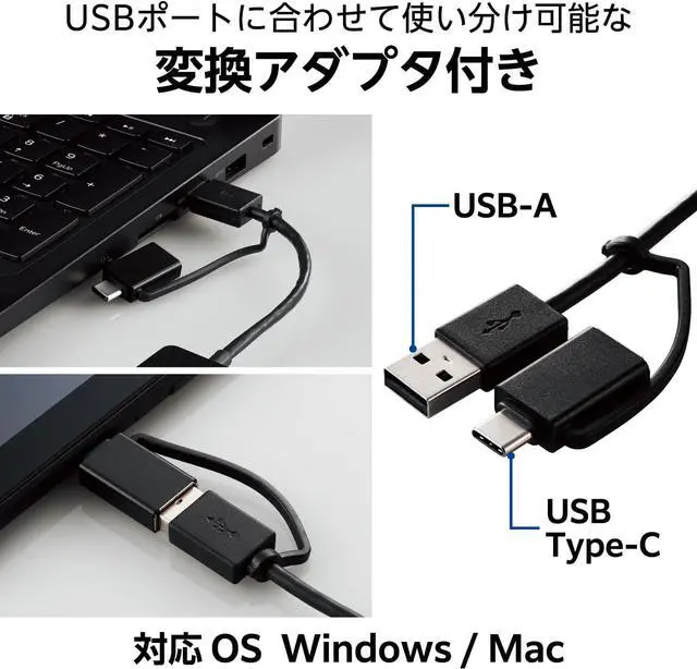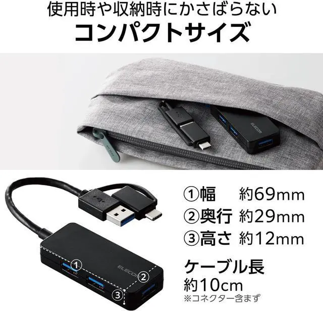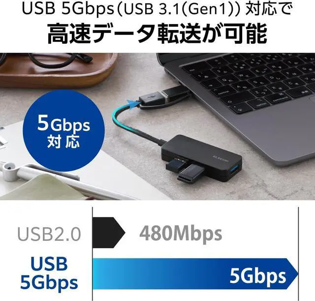 USB 5Gbps (USB3.1 (Gen1) hub with converter adapter that can be connected to USB-A port or USB Type-C (TM) port