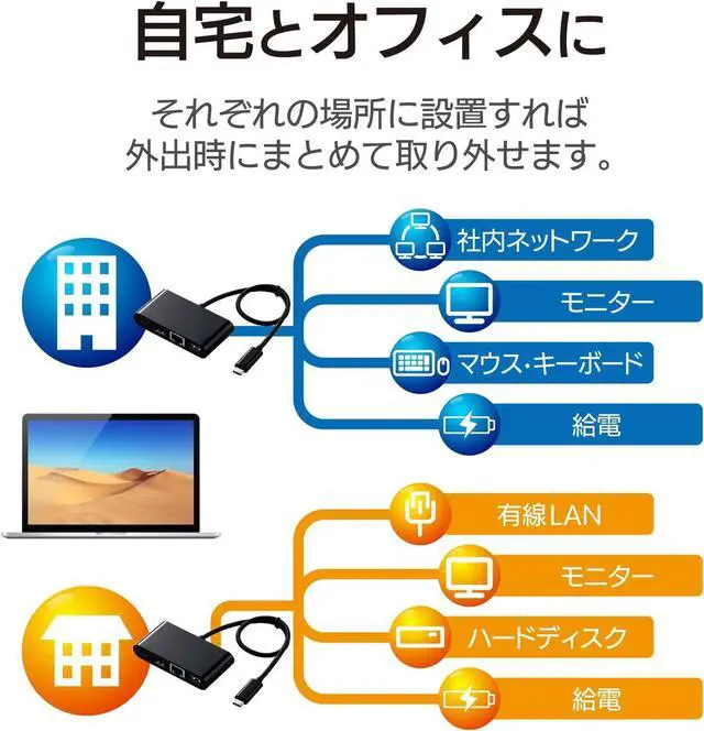 Connect peripherals together with a single cable to a USB Type-C computer. USB Type-C connection docking station for video output and USB Power Delivery to use peripherals while charging your computer