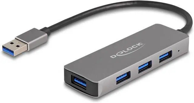 This sturdy USB hub from Delock in metal housing is connected to a computer, notebook or mobile device via the USB Type-A port It can be used with various USB devices, such as USB sticks, card readers, external enclosures, etc