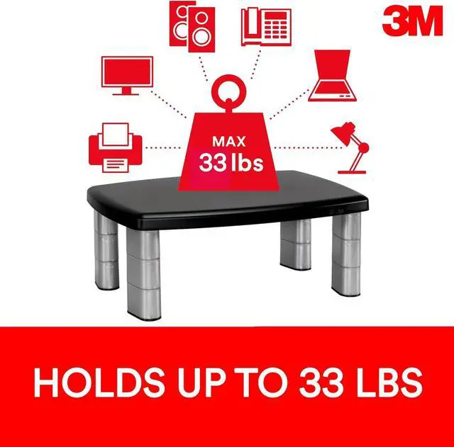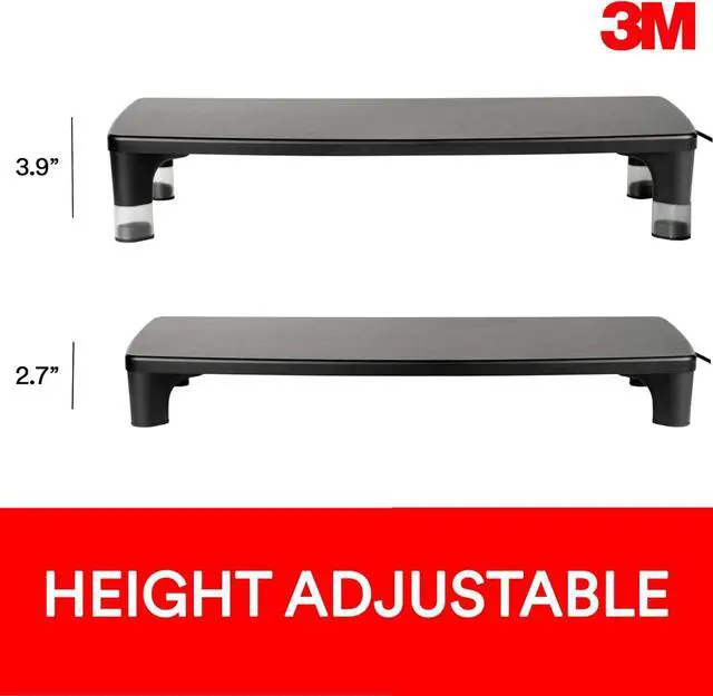 Monitor Stand Ms100b, 21.6 X 9.4 X 2.7 To 3.9, Black/clear, Supports 33 LbCompatible with Windows 2000 SP4, XP SP3, 2003, Vista, 7, 8, 10 and Mac OS 10.5 or above.Easily adjust height settings from 2.76" to 3.94" to get your monitor to a comfortable height for viewing.Generous 18.4" space between legs to store laptop, keyboard or other tools. 0 - 0