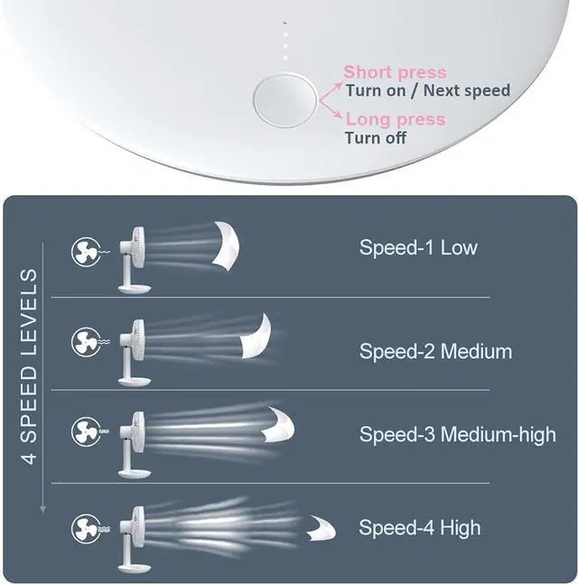 Rechargeable Battery: Equipped with a 4000 mAh rechargeable battery, this portable small fan gives about 10 hours of working upon full charge. Charge it through any USB power source like power bank, laptop, desktop, adapter, wall charger etc.