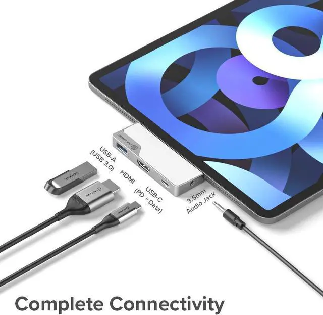 ALOGIC USB C Hub, 4K HDMI, 60W USB C Laptop Charging, USB C to 3.5mm, 1 USB A, Dock Nano Mini, Compatible with iPad Pro/Air (Thunderbolt 3) (Silver)