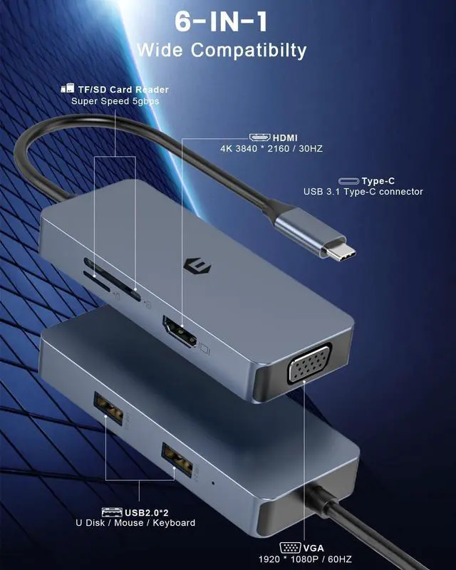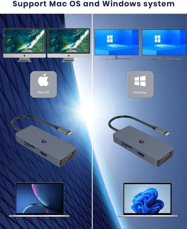 [SD/TF Cards Reader]: Speed up to 104 Mbp/s multiport adapter built-in SD, and TF slots quickly access files from universal SD card and Micro SD card. Super fast read and write speed, quickly view your photos or videos, perfect for photographers, designers, video editors, etc.