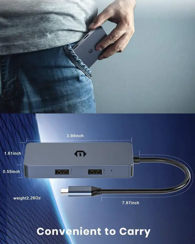 [Easy to Carry]: Designed 3.94*1.61*0.55 inches and weighing just 2.26 oz, the Ultra Slim Hub is easy to set into your laptop sleeve or bag for effortless portability. The hub in your bag for on-the-go presentations, data gathering design projects, and more is An ideal device for everyday carrying, commuting, and traveling.