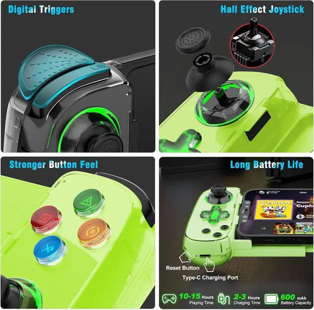 Wireless Controller for iPhone with Hall Joystick: The Hall effect joystick provide ultra precise control, No drift; It helps you gain dominant position of games faster and the performance and game experience has been improved qualitatively; This wireless game controller adopts Bluetooth 5.0 connection technology, stable connection, low latency