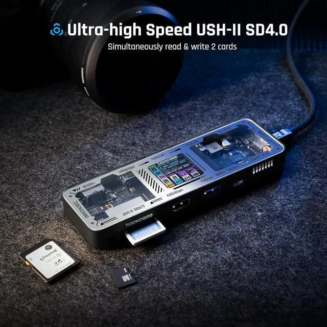 Ultra High-speed Transmission: Connect your drives or external hard drives to either the USB-C data port or the USB-A 3.2 gen 2 ports to transfer files at up to 10Gbps, and USH-II 312MB/s SD & Marco SD card slots, you have a huge number of ports to transfer files at high speed.
