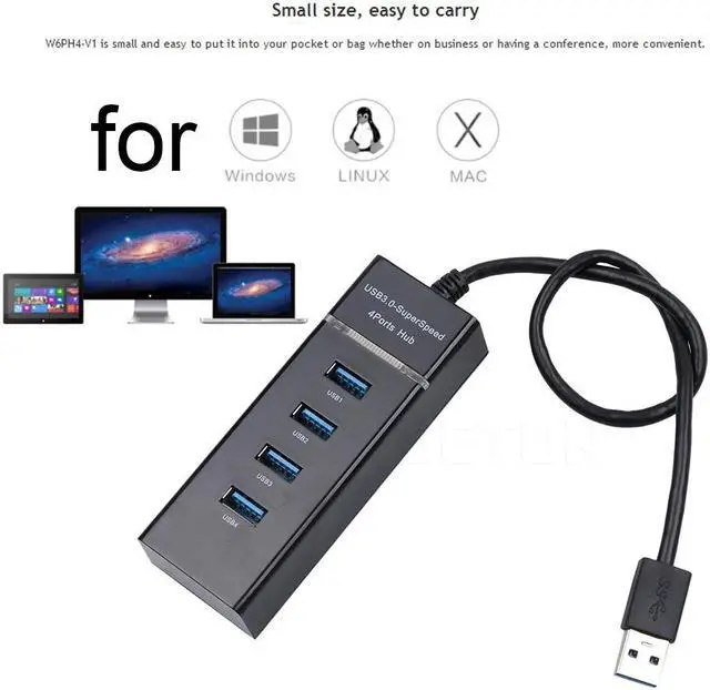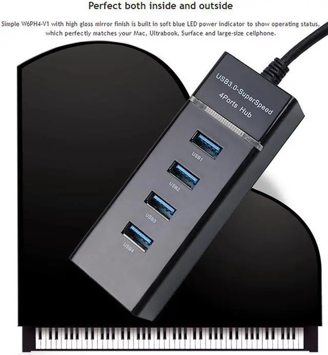 4-port USB 3.0 hub with super speed transfer rate up to 5Gbps.