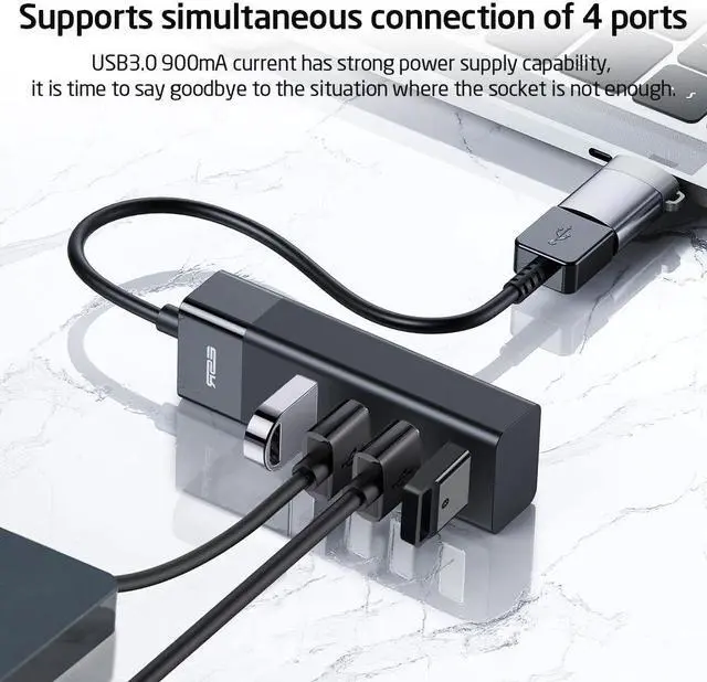 This USB hub supports super speed transfer up to 5Gbps, that means 10X faster than USB 2.0 (480 Mbps). The USB hub 3.0 No external power supply 4 USB hub can be used independently for transfer(low power). This USB hub with a DC 3.5mm power supply interface, this USB 3.0 port power supply can be connected to offer extra power, and we offer a 5V power adapter for a high-power consumption device.