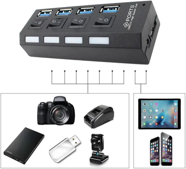 Description:USB HUB 3.0 Super Speed 5Gbps 7 Ports USB 3.0 HUB USB Splitter With On/Off Switch Platooninsert For Computer PeripheralsEach Hub With ON/OFF Switch, Easy To Control.Over current detection and protection function, effectively protecting the connected equipment and the HUB.