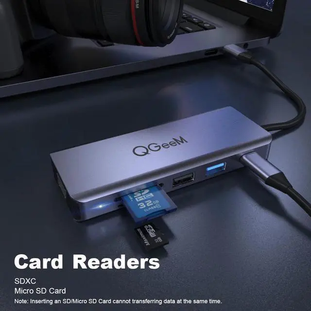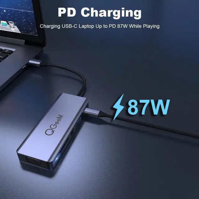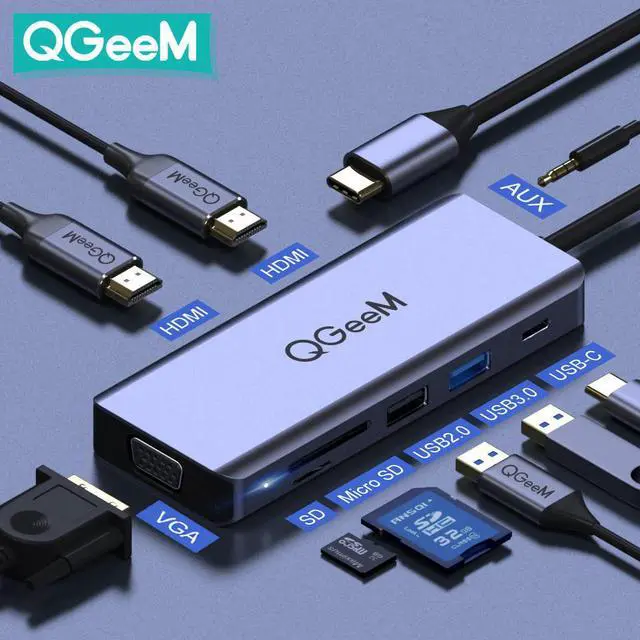 QM USB C Hub for Macbook Pro Air Dual HDMI VGA Micro Card Readers Aux PD OTG Multi USB Hub 3.0 Type C Adapter for Notebook