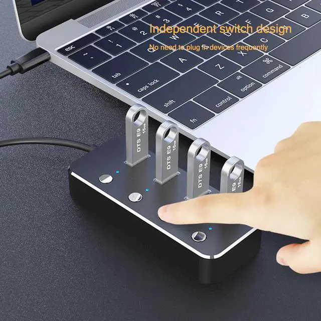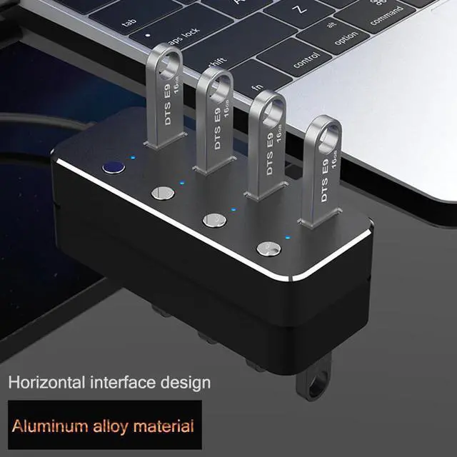 Product Features:1. 4 USB3.0 high-speed transmission interface, high-performance main control chip to ensure that each USB3.0 interface runs at 5Gbps theoretical high-speed bandwidth, which is convenient for multiple devices to use at the same time.