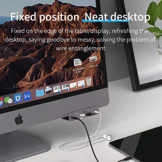 Type-c Hub USB 3.0 HUB Clamp Design Aluminum Type-c to HDMI Alloy Clip-Type /TF Card reader Audio Port for iMac